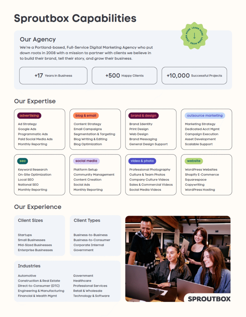 Sproutbox is a Portland-based, Full-Service Digital Marketing Agency who put down roots in 2008 with a mission to partne...